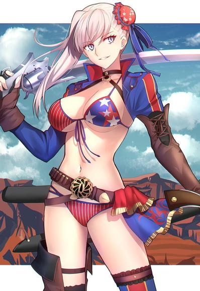 #1girl #american_flag #american_flag_bikini #american_flag_print #asymmetrical_hair #belt #bikini #blue_eyes #blush #breasts #buckle #bun_cover #chromatic_aberration #cleavage #collarbone #commentary #cowboy_shot #elbow_gloves #fate/grand_order #fate_(series) #flag_print #flag_print_bikini #gloves #gunblade #hair_bun #highres #holding #holding_sword #holding_weapon #large_breasts #long_hair #looking_at_viewer #miyamoto_musashi_(fate) #miyamoto_musashi_(swimsuit_berserker)_(fate) #miyamoto_musashi_(swimsuit_berserker)_(second_ascension)_(fate) #navel #photoshop_(medium) #pink_hair #print_bikini #shigure_s #shrug_(clothing) #single_hair_bun #smile #solo #swept_bangs #swimsuit #sword #thighhighs #weapon https://danbooru.donmai.us/posts/3601230