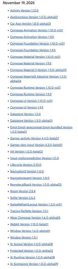 🔗 https://developer.android.com/jetpack/androidx/versions/all-channel?hl=en#november_19_2025