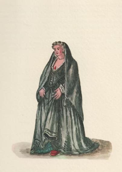 "Concubine" from the Gli abiti de veneziani (1754) by Giovanni Grevembroch, translated by René Seindal.
