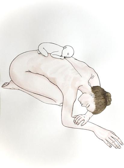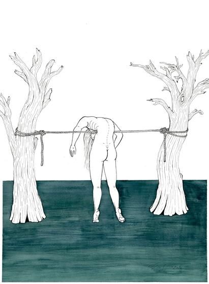 Foldet like wet laundry on a wire. You might say that humans can’t fold themselves like this, but maybe you’d be folding yourself in many impossible ways if you could.