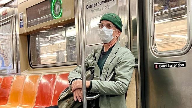 "Mitten im morgendlichen Berufsverkehr verbarg der Promi sein berühmtes Gesicht hinter einer medizinischen Gesichtsmaske, wollte wohl nicht erkannt werden."