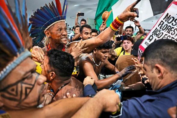 The tradition of colonization manifests itself through the exploitation of the rainforest, industrial agriculture, mining, and oil production, which destroy indigenous territories. Solidarity greetings to the indigenous people who stormed the climate conference building and sparked a moment of revolt. https://www.zdfheute.de/panorama/klimakonferenz-cop30-indigene-aktivisten-protest-100.html