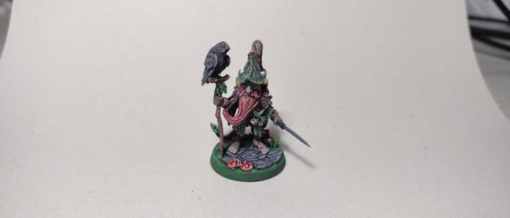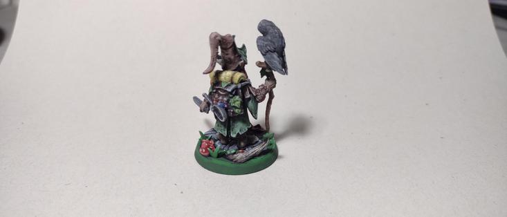 Donyet del bosc amb un mussol gris. Fet pera un jugador de DnD.