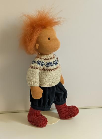 Rory has new clothes. His jumper is the Hatkl yfta pattern by Winterludes & available on Ravelry. It is knitted with Shetland wool from Jamieson and Smith.