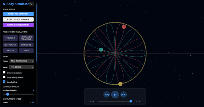 Explore the famous three-body problem with this interactive N-body #physics simulator. Real-time 3D visualization of gravitational #dynamics and #orbital #mechanics.