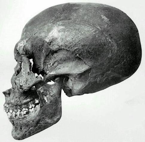 Cranio di KV55 (immagine: Wikimedia Commons)Durante il recupero, la mummia di Akhenaton rovinò tra le mani degli archeologi riducendosi al solo scheletro e decretando la perdita di molti dati utili. L’identificazione si presentò quindi subito molto problematica. Dall’esame del bacino, Davies ipotizzò che la salma appartenesse alla regina Tye, moglie di Amenophi III. Altri indizi presenti nella camera sepolcrale, come i mattoni incisi con cartigli recanti il nome di Akhenaton, sembravano invece indirizzare verso quest’ultimo.