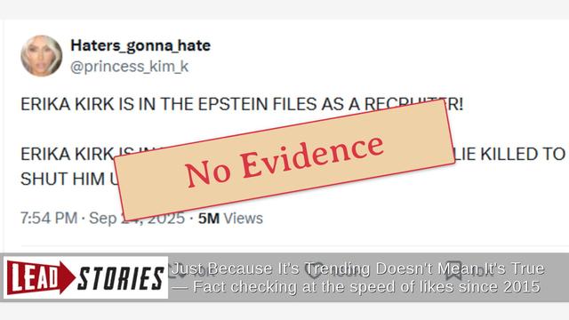 Is there evidence that Erika Kirk was a recruiter for Jeffrey Epstein or that she had her husband, Charlie Kirk, killed to shut him up about it? No, that's not true: The claim appears to be based on another false...