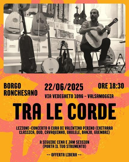 Un viaggio nel tempo e nei luoghi, alla scoperta di legami fra culture diverse attraverso le storie e i repertori di vari strumenti a corda. Indagando l'origine di strumenti quali la chitarra e il liuto, verrà alla luce il filo rosso che conduce direttamente all'oud arabo, svelando così il rapporto profondo tra mondi apparentemente distanti, come le sonorità arabe e le musiche del Rinascimento europeo. Questa sarà la traccia da seguire lungo un percorso segnato da altri strumenti, che unisce Europa, Sudamerica, Oceania, Africa e Nordamerica.
