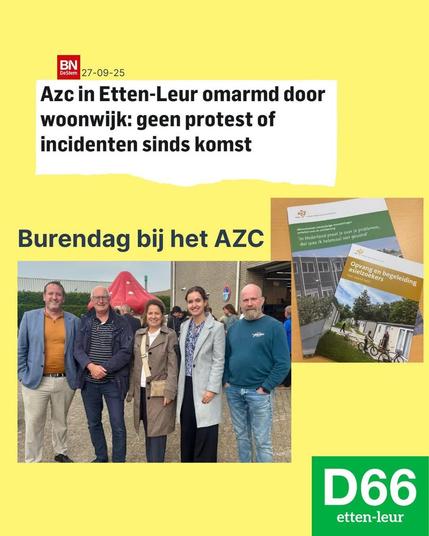 Onze fractie ging vandaag op bezoek bij het AZC in het kader van Burendag đ¤. Mooi om te zien hoe vrijwilligers en bewoners openstaan om hun verhaal te delen. Erg trots dat Etten-Leur laat zien dat het wÊl kan! đ