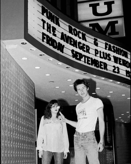 Exene Cervenka and John Doe of X, outside the Hollywood Palladium, September 1977.