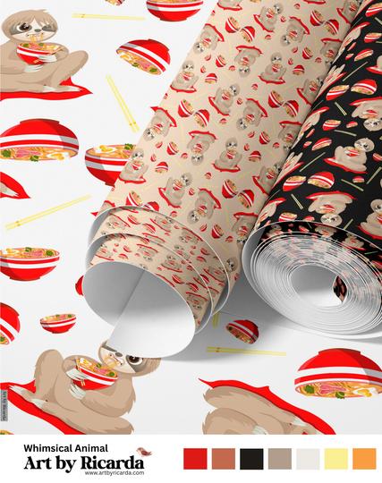 #SlothPattern #RamenLover #SeamlessDesign #FabricDesign #HomeDecorArt #GiftWrapDesign #WhimsicalPatterns #CuteAndCozy #SurfacePatternDesign #SlowLivingVibes #PatternDesign #AdorableArt #SlothArt #ArtbyRicarda