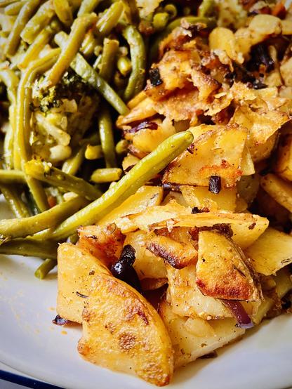 bryonyannie on September 7, 2025: "Bryonys Rustic Cottage Pie with Skin-On Mash! INGREDIENTS: • 500g beef mince ° 1 large onion, finely chopped • 2 medium carrots, finely chopped • ½ tin black beans, blended smooth • 1 small courgette, blended • 2 handfuls spinach, blended (I add spinach to loads of dishes) • 2 handfuls kale, blended • 400ml homemade chicken stock (from boiled roast bones) • 3 tbsp reduced-salt gravy granules (or to taste, until thickened) • Salt and pepper to taste • 600g potatoes, skin left on, chopped into chunks (I used about 4 big potatoes, didn't really measure) • 50g butter (or olive oil for lighter option) • Splash of milk (or stock for dairy-free) • Optional: grated cheese for topping ~~ METHOD: 1. Cook the filling - • In a large pan, fry the onion and carrots in a splash of oil until softened (about 5-7 minutes). • Add the beef mince, breaking it up and cook until browned. • Stir in the blended courgette, spinach, kale, and black beans. Cook for 2-3 minutes to reduce liquid. ~~ 3. Make it saucy - • Pour in the homemade stock. Bring to a simmer (this is stock I made previously and had taken out the freezer - don't really have exact measurements) • Sprinkle in the gravy granules gradually, stirring until the mixture thickens into a rich sauce (some people use flour but I feel like that changes flavour and its more effort getting rid of lumps) • Optional: season with salt and pepper. ~~ 2. Prepare the mash - • Boil the potatoes (skin on) in salted water until tender, about 15–20 minutes. • Drain, then mash with butter and a splash of milk. Season to taste. Keep it slightly chunky if you want for that rustic feel. ~~ 4. Assemble! • Spoon the beef mixture into a deep ovenproof dish. • Top with the rustic skin-on mash, spreading to cover. Use a fork to rough up the surface for crispy edges. Sprinkle over grated cheese if using. ~~ 5. Bake - Place in a preheated oven at 200°C (180°C fan) for 25–30 minutes, until the top is golden brown with crispy peaks and bubbling at the edges. ~~ Serving suggestion - Enjoy with steamed peas, cauliflower Cheese (my fave) or a side of green beans. My kids love swede and carrot, Yorkshire puddings and broccoli.".
