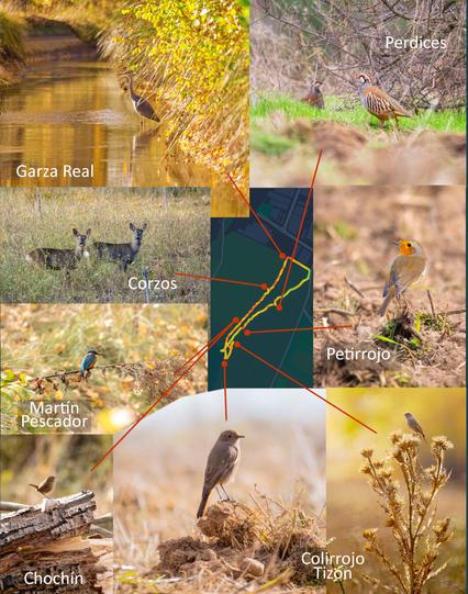 Primero, una garza real inmóvil entre los reflejos dorados del canal. Más adelante, un grupo de corzos que me barruntaba en silencio; Un chochín saltando nervioso entre la madera, un martín pescador azul eléctrico observando la superficie del agua desde su posadero; un colirrojo tizón sobre el terrón de un barbecho, un petirrojo confiado y curioso, y para rematar, un bando de perdices alimentándose entre los matorrales.