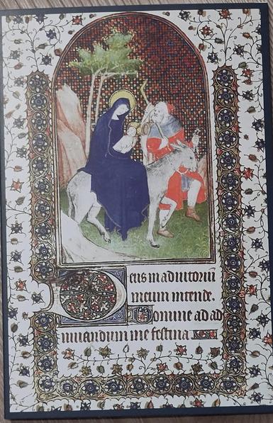 "Textura" ist aber auch eine Schriftart, dir vor allem im Mittelalter benutzt worden ist. Hier z.B. dargestellt auf einer UNICEF-Karte, wo diese als Teil einer französischen Darstellung - etwa in einem Stundenbuch - abgebildet ist.