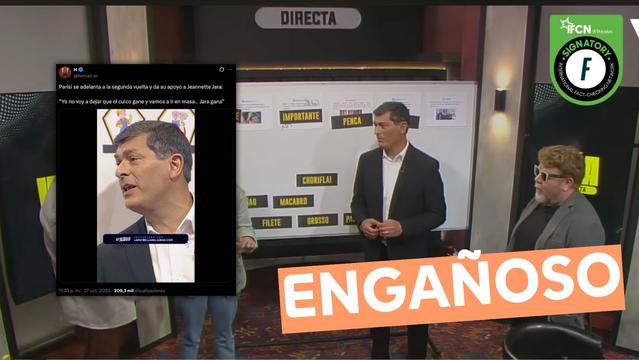 Un video viral muestra a Franco Parisi diciendo: «Yo no voy a dejar que el cuico gane y vamos a ir en masa… Jara gana», dando supuestamente su apoyo a la candidata oficialista para una eventual segunda vuelta. Sin embargo, esto es #Engañoso, ya que si bien menciona dicha frase, la hace en referencia al pensamiento de los votantes —es decir, tercera persona—, no a su opción personal.