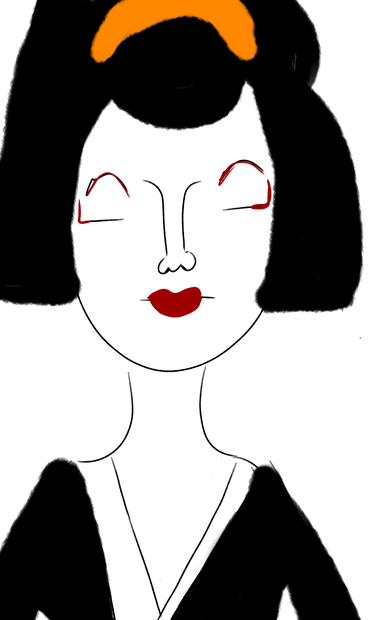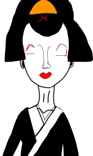 Fluffy watercolor painting of a Japanese geisha/geiko/geigi woman in MediBang