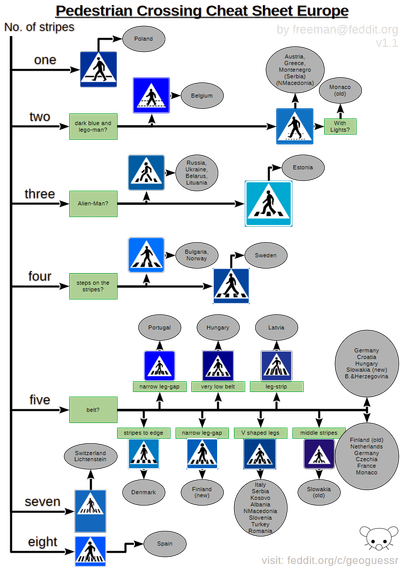 A cheat sheet for learning european pedestrian signs.