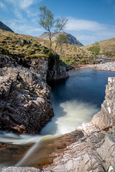 A view towards the head of beautiful Glen Etive, which runs for 14 miles south-west from the upper end of Glen Coe to the head of Loch Etive. Once there you turn round and come back: but it's a wonderful drive to somewhere very special. More pics and info: https://www.undiscoveredscotland.co.uk/glenetive/glenetive/index.html