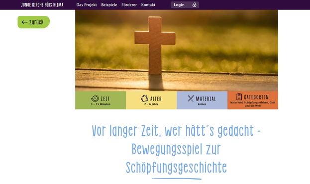 Bewegungsorientierte Erzähleinheit zur biblischen Schöpfungsgeschichte für den Elementarbereich.