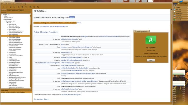 In the screenshot QtAssistant-6.10.0 (not released to the public) showing KChart documentation from kdiagram.