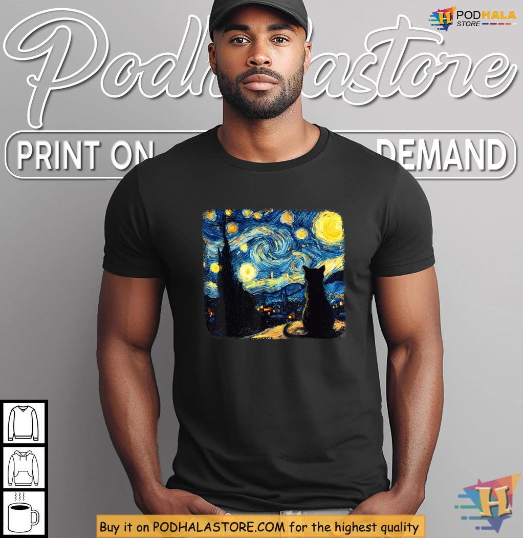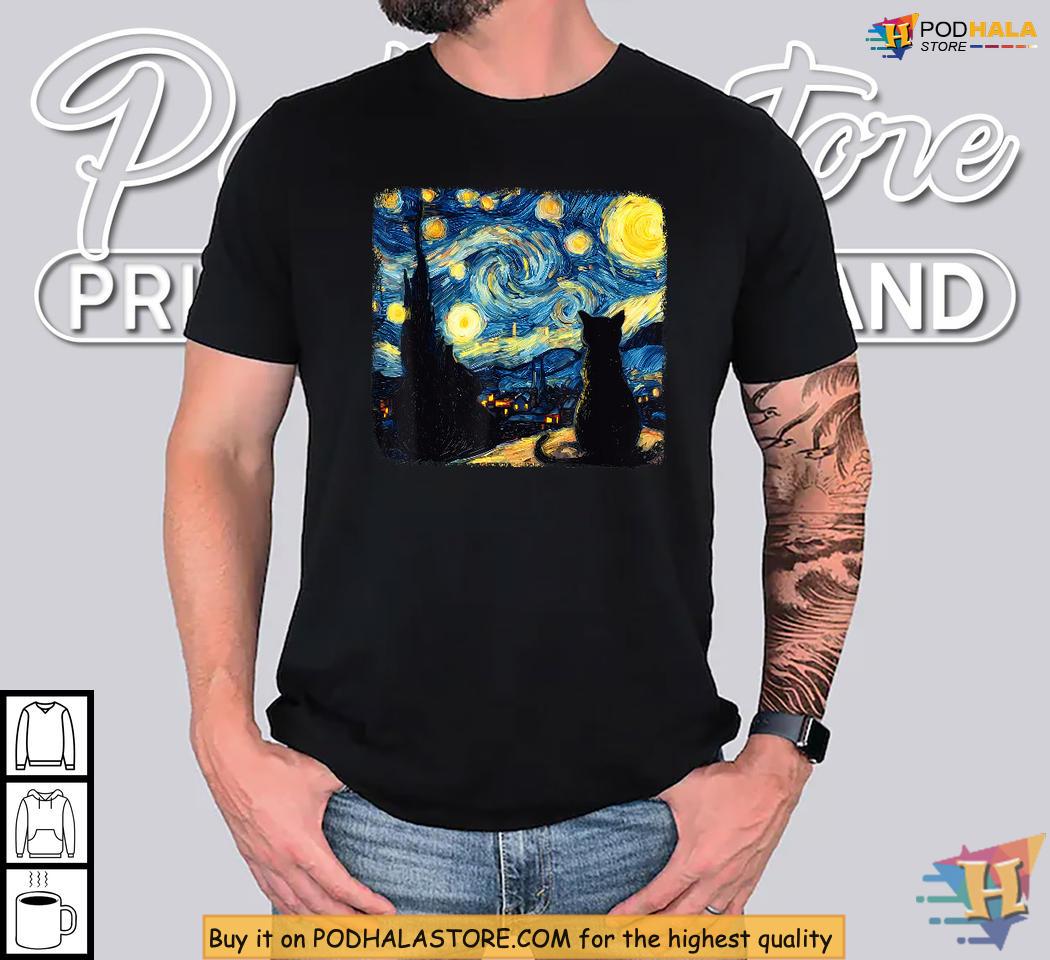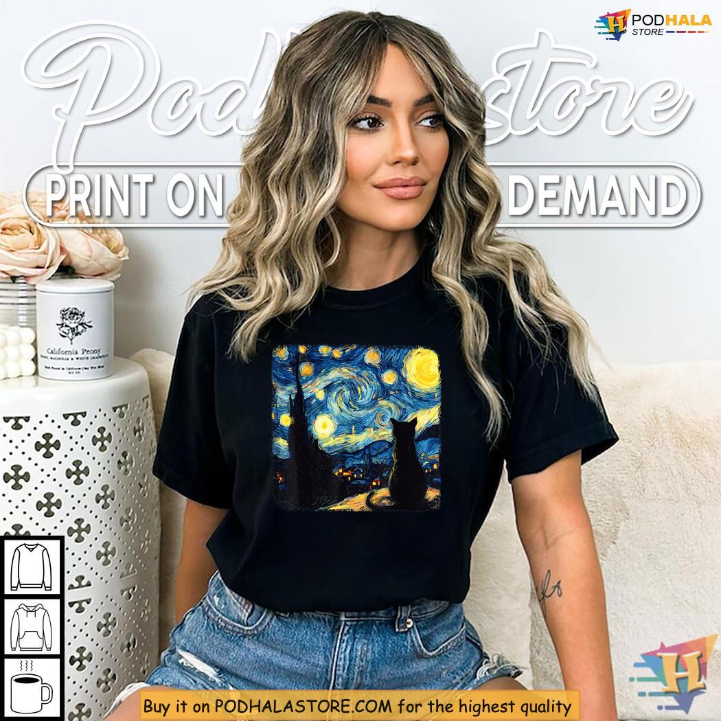 Van Gogh Starry Night" Cat Shirt, Cozy Girls Halloween Shirt for Gatherings