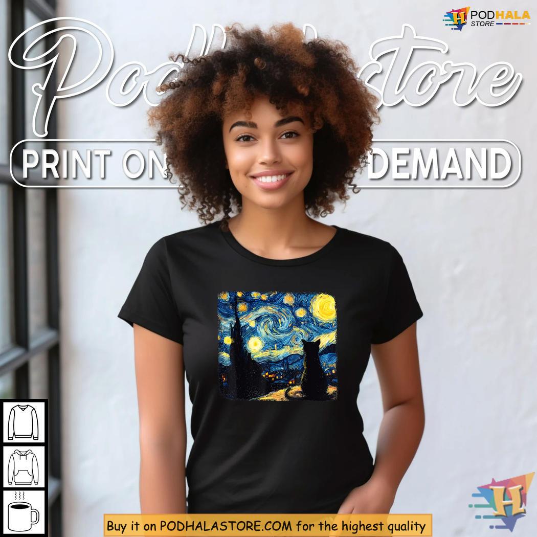 #girlshalloweenshirt #podhalastore #vangogh #starrynight #catshirt #halloweenfashion #cozyapparel
