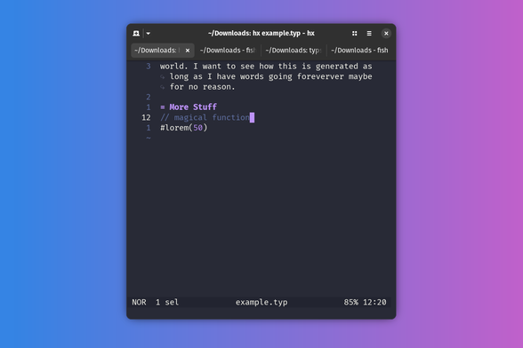 But on typst? Install the snap, open up #helix, and away I go! 😎 Markup language is really intuitive. And writing functions is so easy.