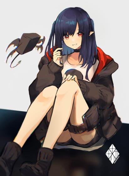 #1girl #arknights #bad_id #bad_pixiv_id #black_boots #black_choker #black_hair #black_jacket #black_shorts #boots #choker #closure_(arknights) #commentary_request #grey_background #grin #hair_between_eyes #highres #hood #hood_down #hooded_jacket #jacket #knees_up #lambda_(arknights) #long_hair #long_sleeves #looking_at_viewer #nanatsuka #open_clothes #open_jacket #pointy_ears #puffy_long_sleeves #puffy_sleeves #red_eyes #shirt #short_shorts #shorts #simple_background #sitting #sleeves_past_wrists #smile #solo #two_side_up #white_shirt https://danbooru.donmai.us/posts/5431090