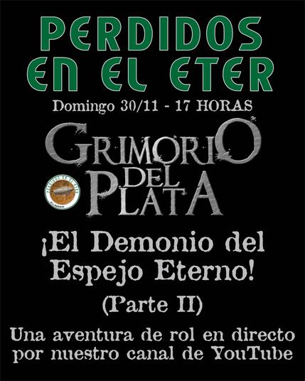 Este domingo 30/11 a las 17 tenemos la segunda parte de nuestra aventura de rol de Grimorio del Plata: ¡El Demonio del Espejo Eterno!