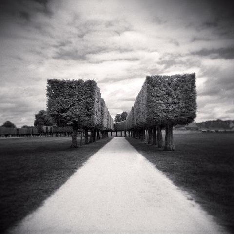 Black-and-white photograph Trees Alley, Château De Chambord Garden, France. August 2021. Ref-11484 by Denis Olivier. Fine-art print, original signed limited editions, reproductions, optional frame available for purchase at sizes from 13x13 cm to 70x70 cm (5.1x5.1