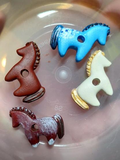 Painted some 3d printed horse beads. Now to make stuff with them. (They're an experiment, I don't really have a specific plan.)