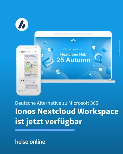 Diese Woche ist "Ionos Nextcloud Workspace" an den Start gegangen. Die beiden Unternehmen bezeichnen die Plattform als "europäische Alternative zu Angeboten wie Microsoft 365", die die digitale Souveränität der Nutzer unterstreicht, denn die Daten bleiben in Deutschland
