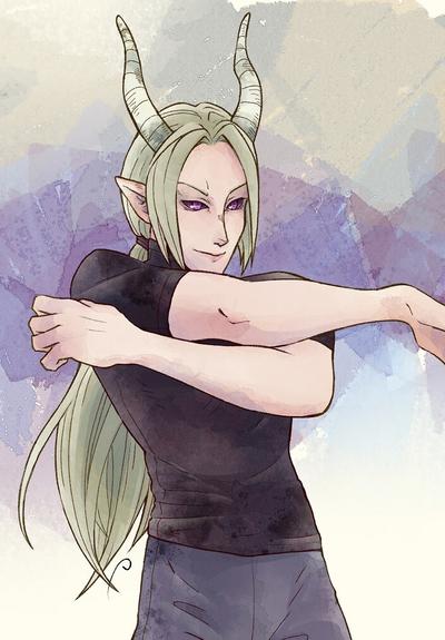 #MastoArt #DigitalArt #FanArt #mairuma #irumakun #iruma #stretching #ponytail #horns #blonde #iposichou