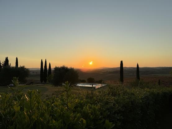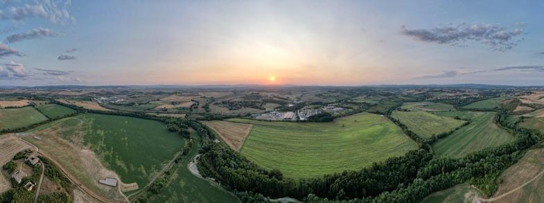 Yet another panorama with the sun setting near Siena, Tuscany, Italia.