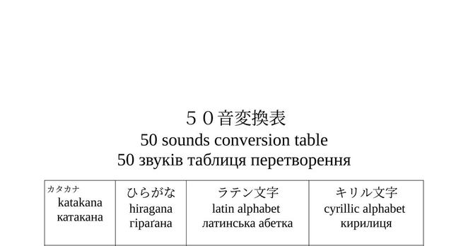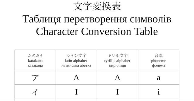 Japanese alphabetical conversion tableТаблиця перетворення японського алфавіту