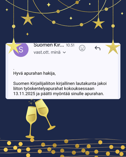 Muistatteko, kun kirjamessulauantaina tarvitsin drinkin jo ennen puoltapäivää? Nyt saan paljastaa syyn!