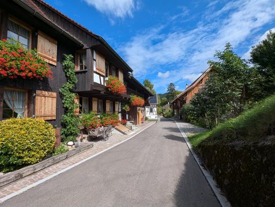 Behind Stein am Rhein I turned a corner and found the cutest wooden houses adorned with flowers. It was like I passed through a portal and skipped a couple of centuries into the past.