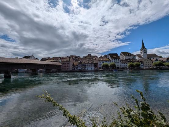 In Diessenhofen I crossed the river on a covered wooden bridge and then followed a gravel path all the way to Schaffhausen to see the Rhine Falls. Thanks to the rainfall lately the water levels of the river Rhine recovered and so the waterfall was quite the spectacle again.