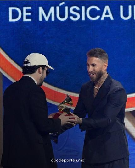 El defensor de Rayados se hizo presente fuera de la cancha al aparecer en la gala de los Latin Grammy, incluso entregando un galardón al cantante puertorriqueño Bad Bunny. 🔵⚪🔥