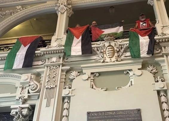 | Gente solidaria con #Palestina ha reivindicado la libertad y la vida durante el pleno del Ayuntamiento de #Valladolid del 29 de septiembre que HA CONDENADO las movilizaciones de protesta contra #Israel en #laVuelta Ciclista.