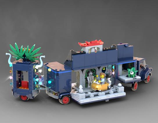 LEGO Bricks hide a haunted fairground in a purple truck