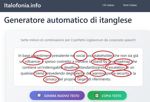Leggendo tra le righe, si intuisce una certa insofferenza per questa denominazione in inglese, presentata come qualcosa di imposto da altri, e affiancata alla traduzione italiana a cui viene dato maggior risalto.