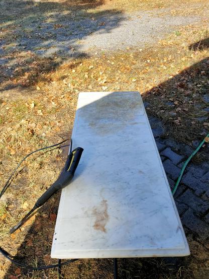 Tentative de rénovation d'un marbre que mon père a utilisé 6 décennies pour encoller les étiquettes de bouteille de vin (il était viticulteur).