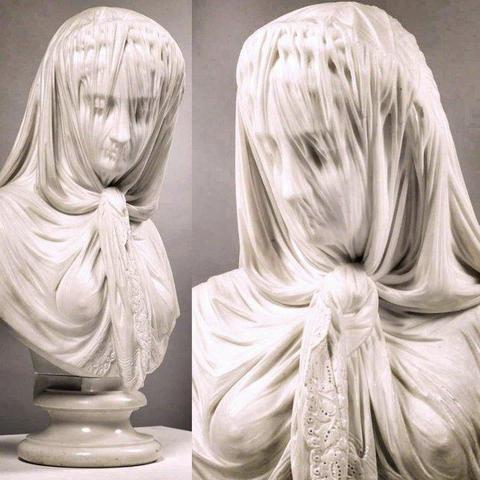 L’artiste italien a sculpté le marbre avec une finesse telle que le voile et le nœud sous le menton semblent faits de tissu véritable 😍