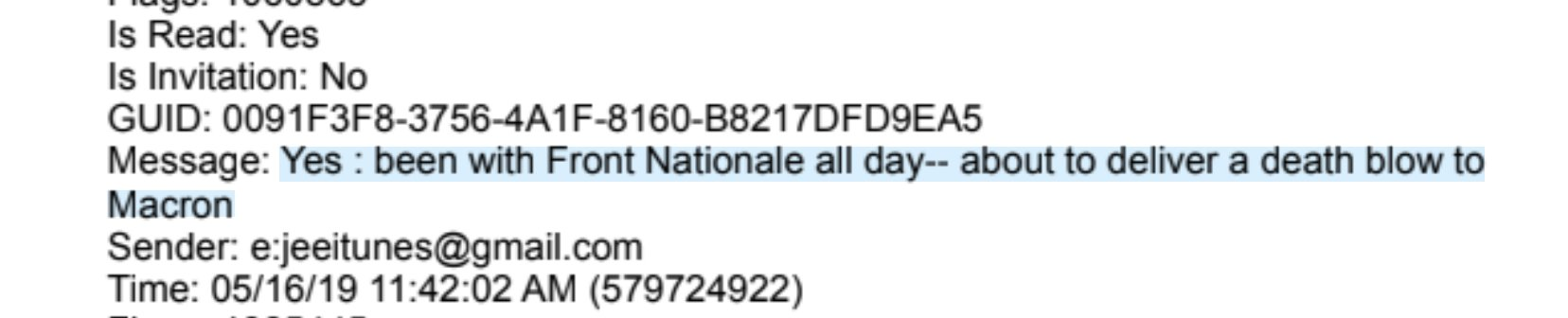 so uh, why was #SteveBannon texting Jeffrey Epstein to say that he'd "been with [France's] Front Nationale all day - about to deliver a death blow to #Macron" in 2019?
