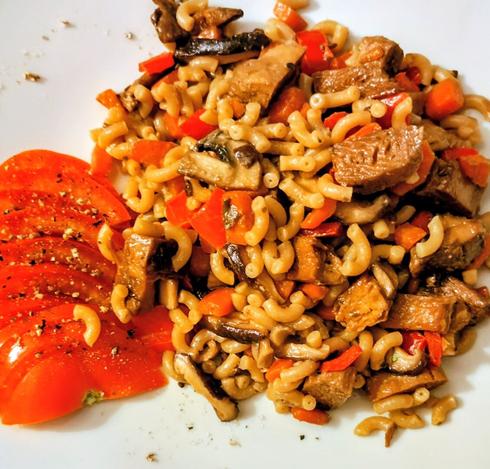 De moestuin ziet er maar zielig uit, maar de oogst van deze week niet: witte kool, groene pepers, rucola, de laatste courgette, een wortel, artisjokken, palmkool, oostindische kers, radijs, paprika's, paksoi, venkel, palmkool en andijvie