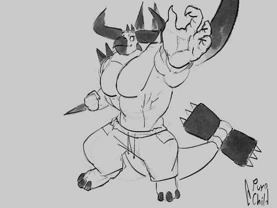- the mighty monstrous merciless T-wrecks with his cybernetic tail implant! com from Lettegis https://bsky.app/profile/lettegis.bsky.social