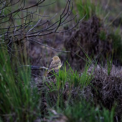 Arriving in the Kampina before sunrise, the blue hour bathed the landscape in soft tones. My first encounter was with the Wood Lark (Lullula arborea, boomleeuwerik), its melodic song carrying across the quiet heath. A short while later, the cheerful Eurasian Blue Tit (Cyanistes caeruleus, pimpelmees) appeared, flitting among the branches with bursts of energy.
