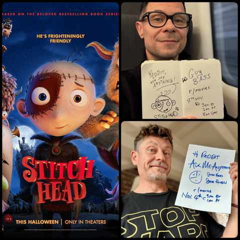 Hi reddit! We're Steve Hudson (director/writer) and Guy Bass (author of the bestselling children's book) of STITCH HEAD, an animated feature about a forgotten creature living in a long-abandoned castle. It's now in theaters everywhere. Ask us anything! STITCH HEAD tells the story of a small, forgotten creature awoken by a Mad Professor to (Almost-)Life. Terrified the suspicious townsfolk of the village below will form an Angry Mob and burn the Professor's Castle to the ground, Stitch Head desperately indoctrinates his fellow creations to NOT be monstrous. But then a clapped-out old Freak Show comes to town, and it’s down-at-heel