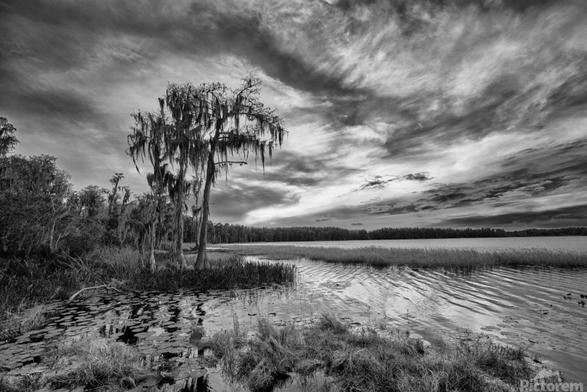 Photograph from the Florida Everglades in Black and White at Sunrise.